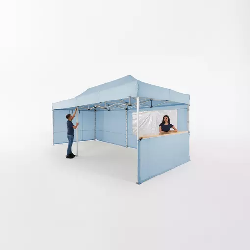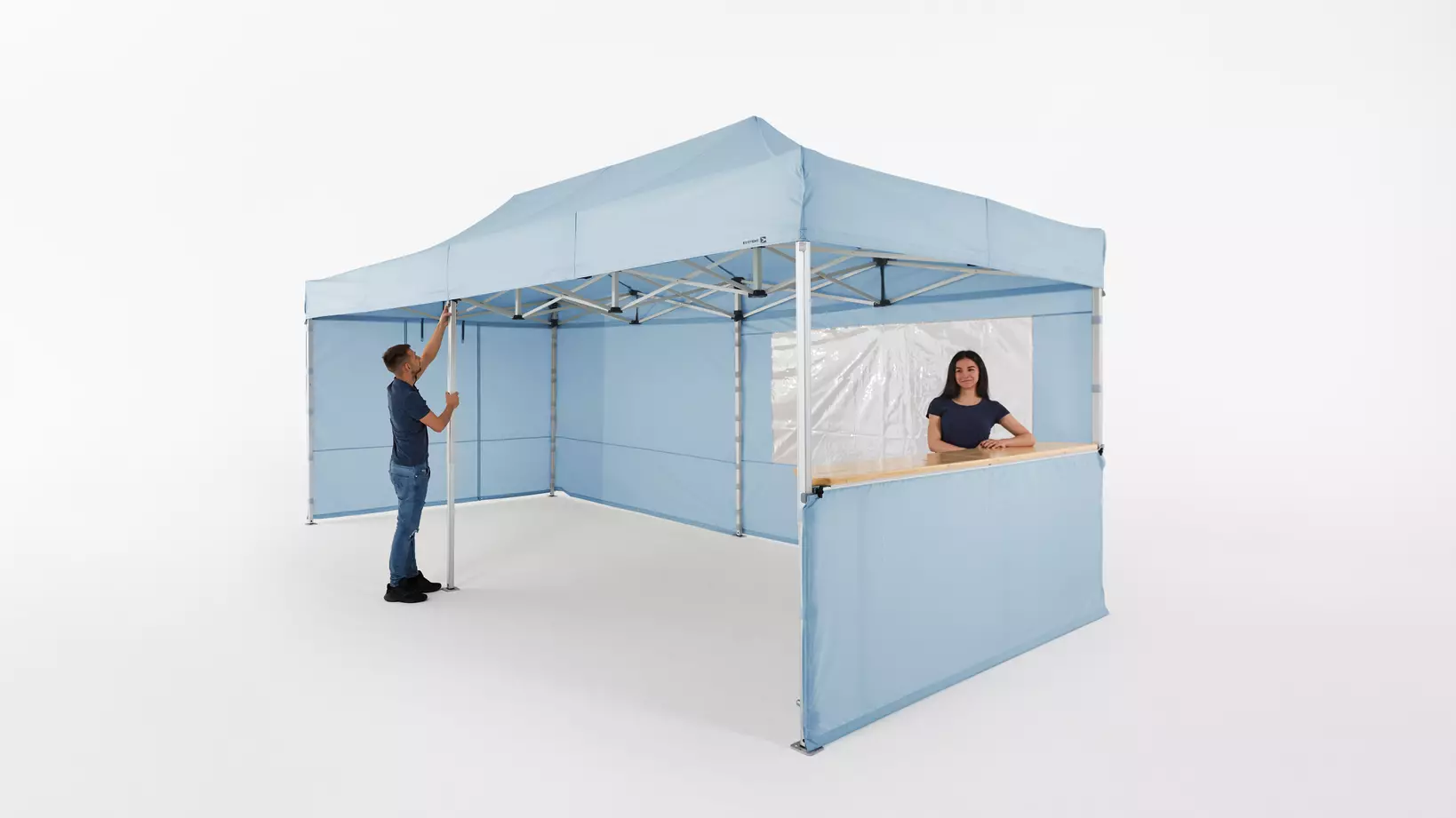 Like all other textiles in our range, our ice blue fabric is 100% waterproof, it has a UV protection of 50+, is is robust and tear-resistant. For ecological reasons, we do not use a fire-retardant coating. However, the textile does not melt as quickly as, for example, ice in the sun. Nevertheless, fire should be kept away from the textiles.