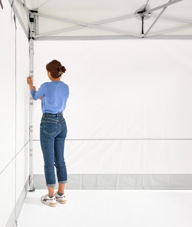 Various sidewall solutions make your pop up gazebo an all-round talent for a bunch of application types: as a sales stand, exhibition tent, market stand, garden tent, party tent or event tent.